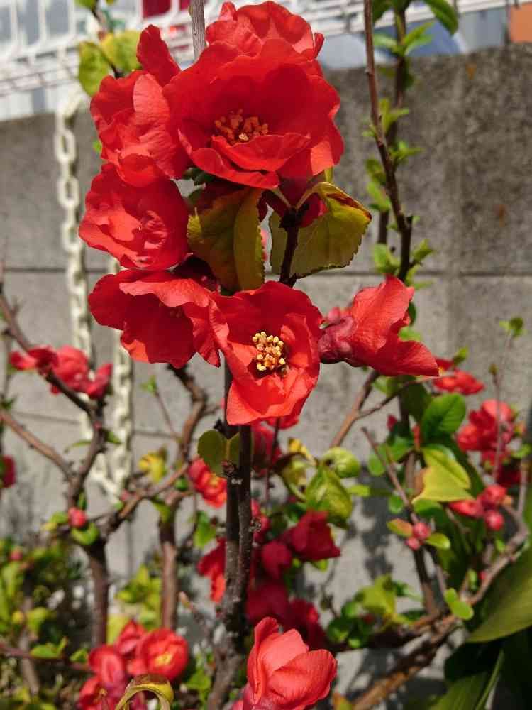 あかい木瓜の花が目をひきました
