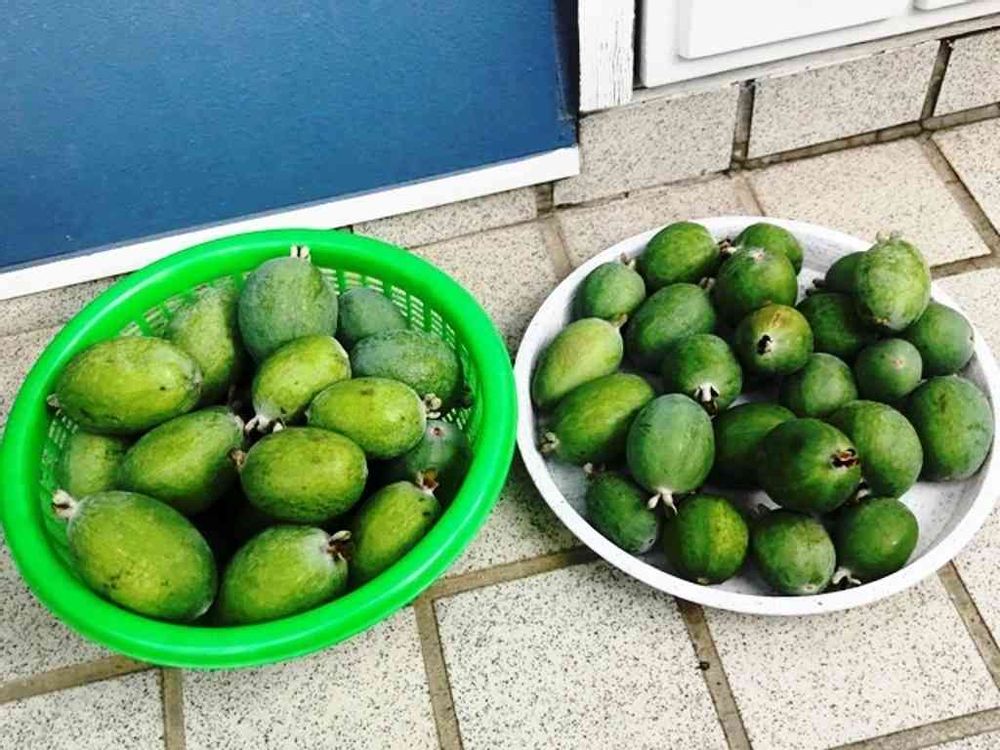 自宅で収穫したフェイジョアの実です。とても甘くて南国の香りがします。