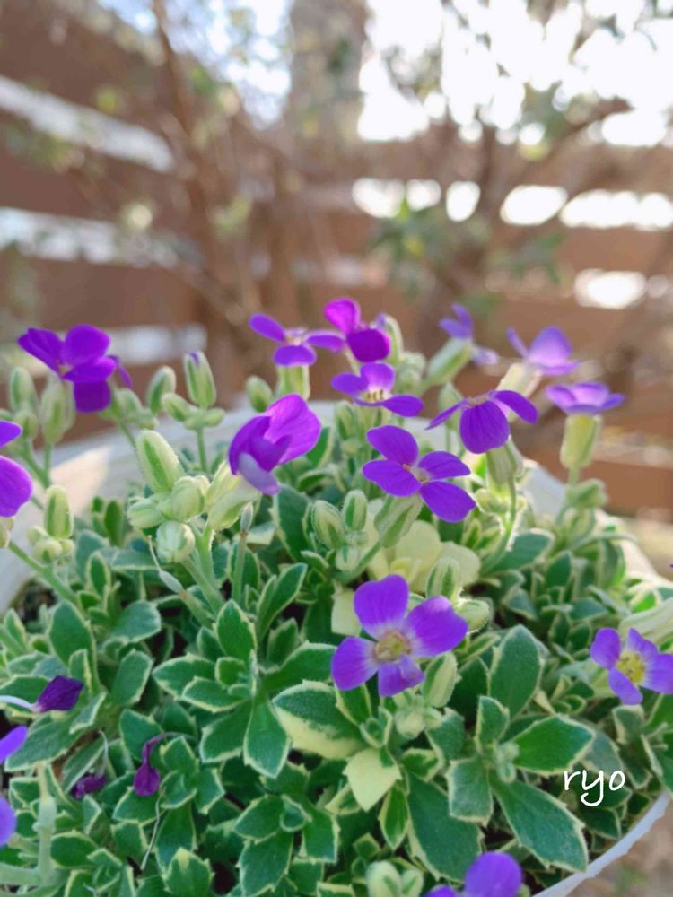 いつも素敵なお花さん🌸🌸🌸🌿オーブリエチアバリエガーラピス葉っぱが班入の小花可愛い〜です🌸😊