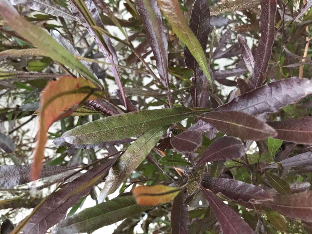 高さ5m程の常緑樹で、夏は緑、冬は写真のように黒褐色に葉色が変わります。木肌は少しザラザラしています。