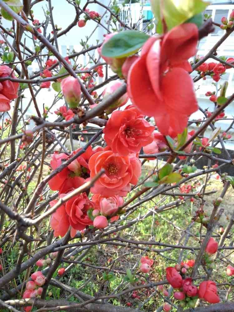 ボケ(木瓜),朝の散歩道,マンションの植え込み の投稿画像