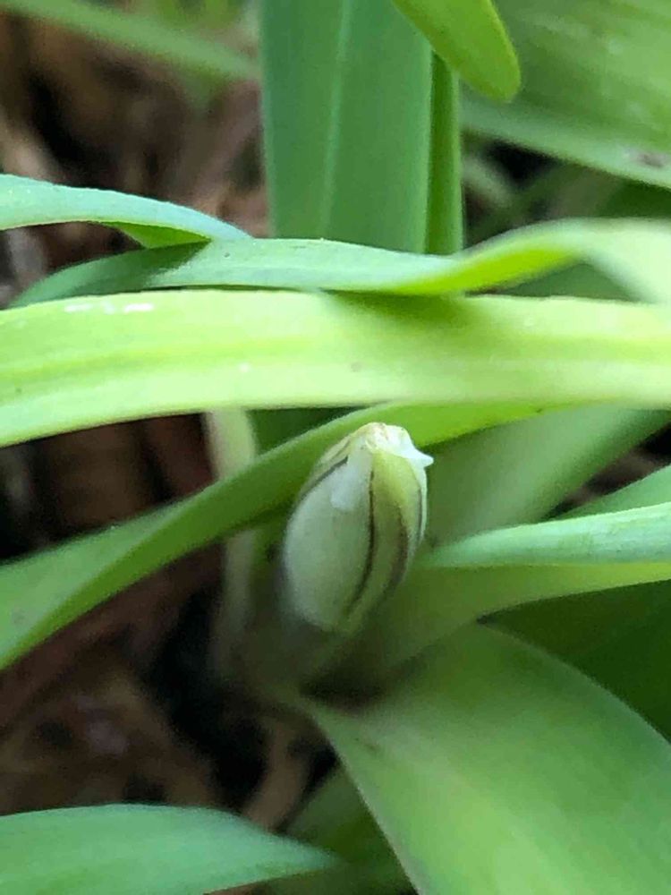 プランターに去年咲いた後の球根の分球から、こんな感じで蕾出てきました。
