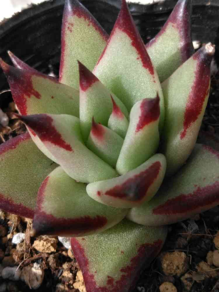 葉の先端が鋭い点と、縁の赤みがこの時期に黒みがかっている点が特徴かと思われます。
