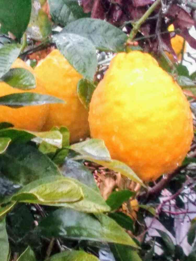 散策の通り道に有るお宅の花壇に有る、檸檬の🌳に握り拳より大きな檸檬の実が、成っていました。