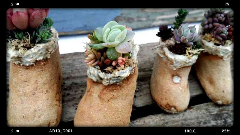『栃尾さんの陶器の靴×チビッ子実生苗&セダム寄せ』~足のsizeは2~3㎝です~