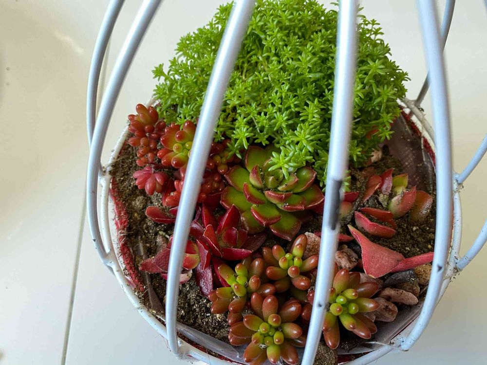 通販で届いた寄せ植え、おまかせ6種と書いてあったけど、6種…?あるか?(私には4種しか見当たんねー😳)