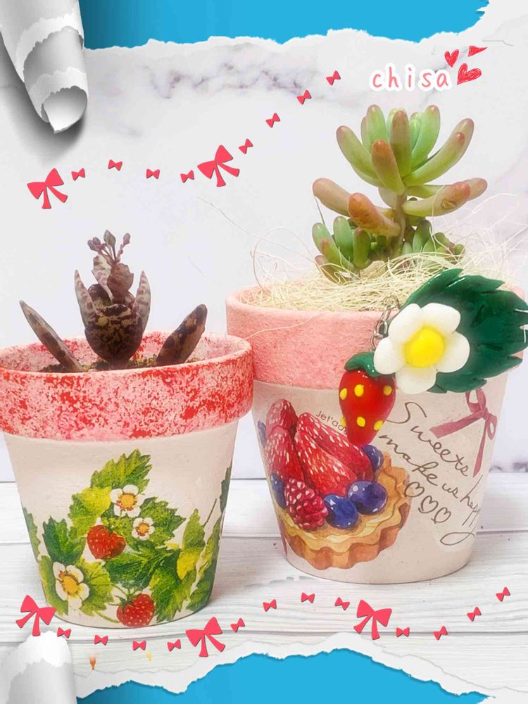 いちごのリメ鉢、すごく可愛い〜😍