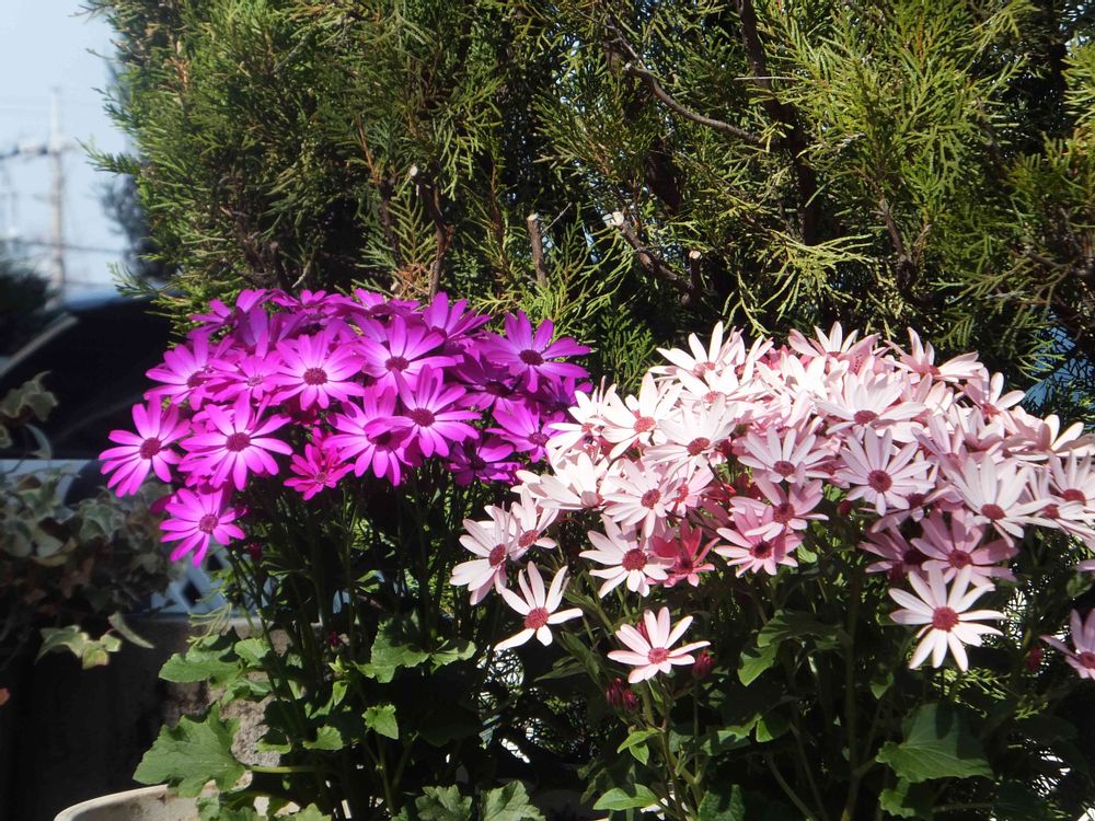 マーガレット、オステオスペルマムどちらかなと思っていましたが、サイネリアは気が付きませんでした。 いままで鉢植えしか見たことがありませんでした。路地植えは初めて。😆