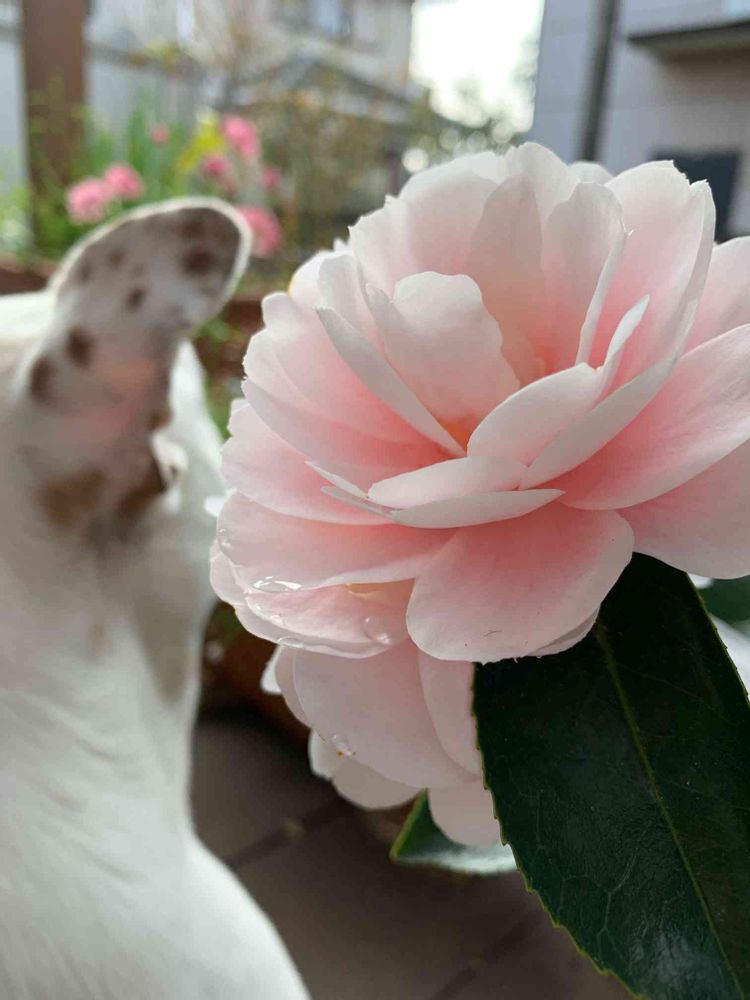 今、すっごい風が吹いて、この椿の花、吹き飛ばされちゃいましたー😭