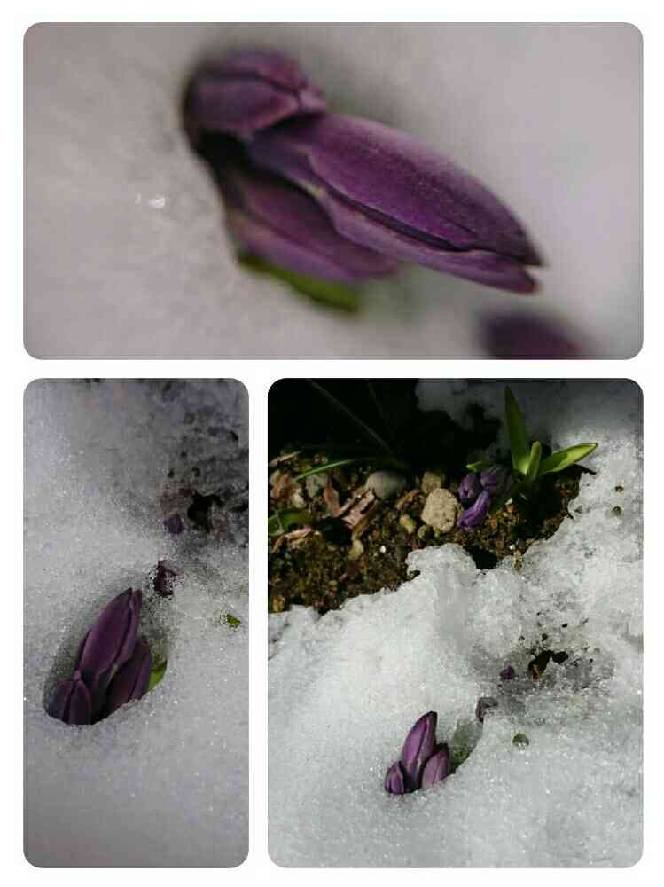 雪に埋もれてしまったヒヤシンスの蕾が顔を出してました