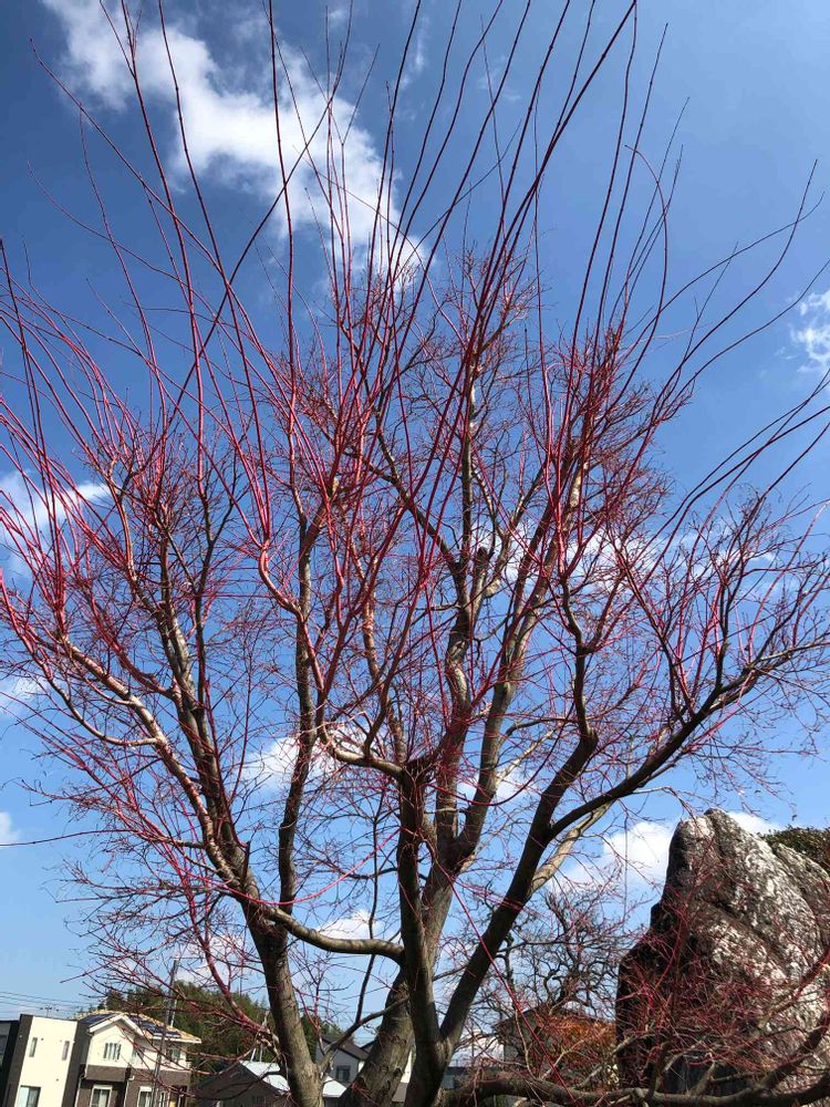 幹は茶色で枝か紅い木です。名前わかりますか?