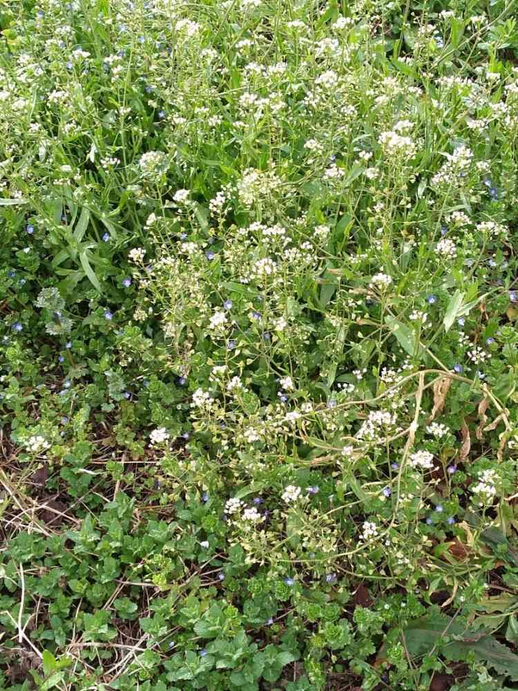 ナズナの群生の中にオオイヌノフグリがちらほら🤗