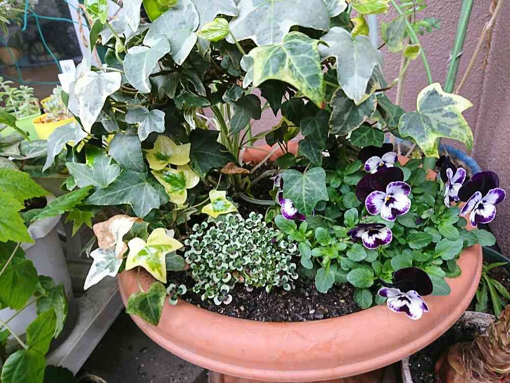 冬の寄せ植えを春の寄せ植えに変えました😁