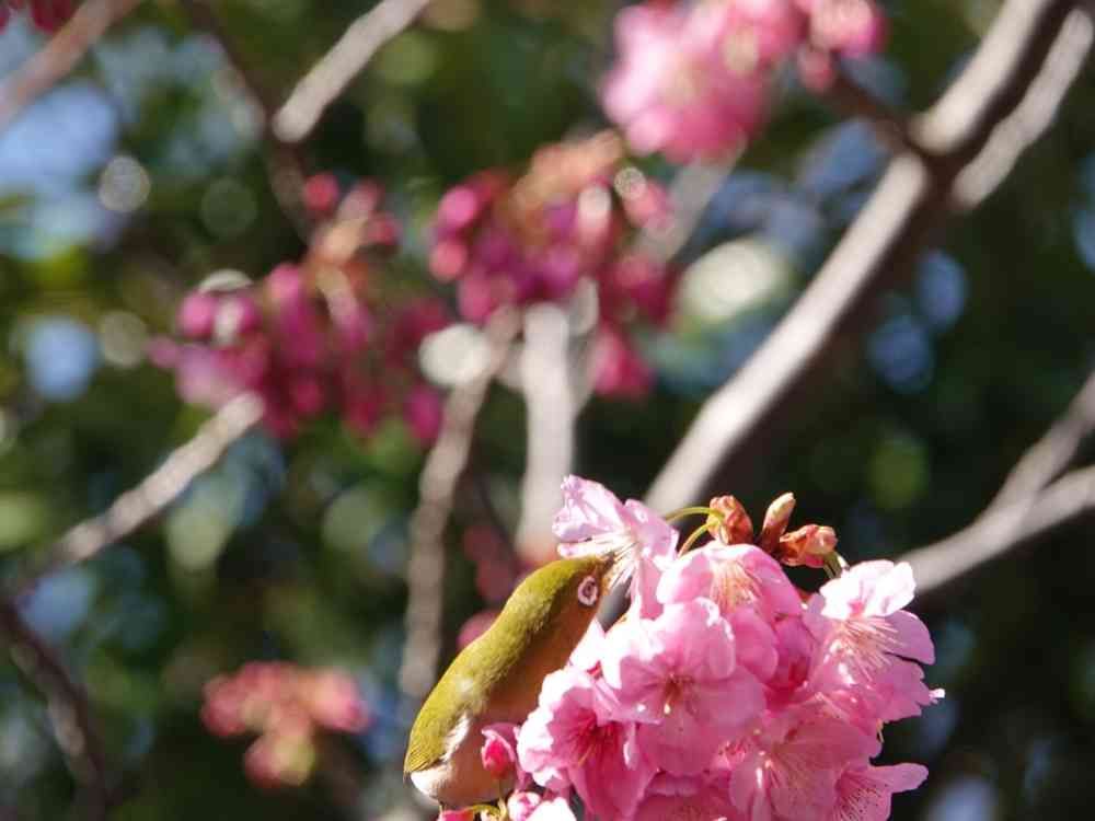 ヨコハマヒサクラとメジロ