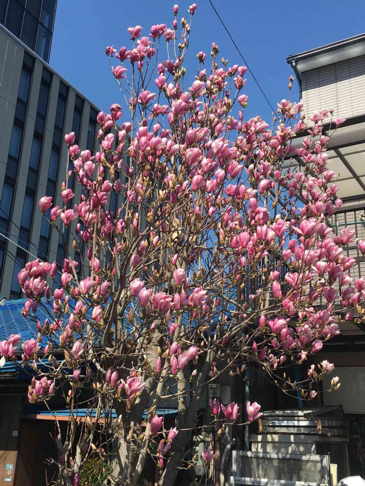 シモクレン(紫木蓮)の木に花がいっぱい咲いてきれいです。