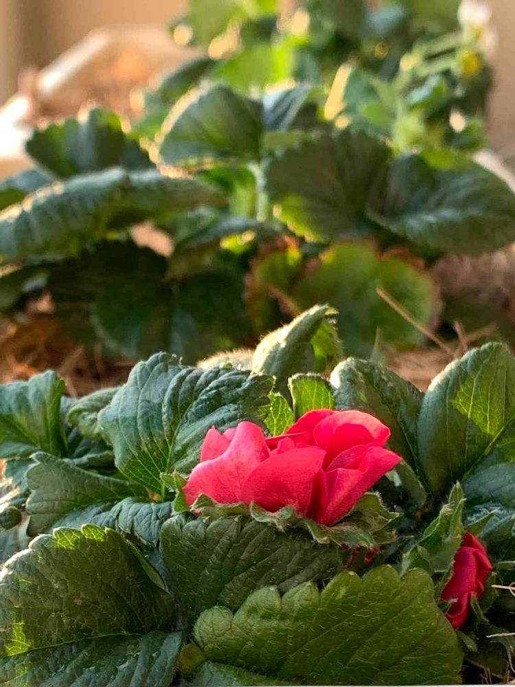 いちご🍓なのに、こんな赤い花弁で可愛いですね^ - ^ 情熱的🌸🌸🌸
