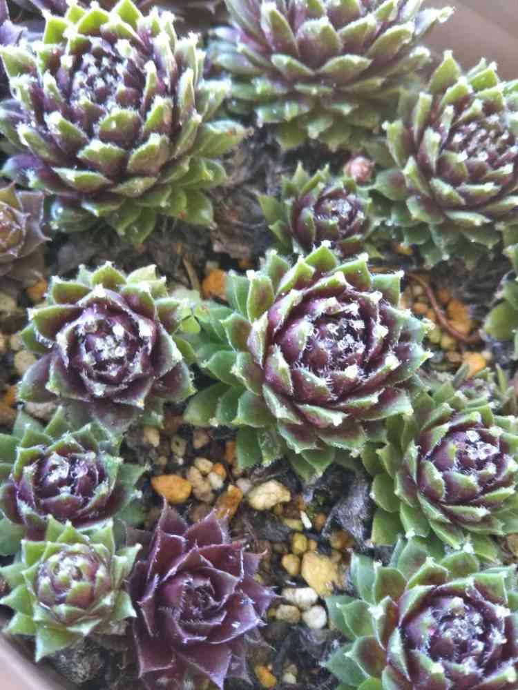 此方も目覚めかけのセンペルビウム・シルバーカーネオルさん。カーネオルの部分がカーノル、カーネオールと発音で呼ばれて売られております。紅葉が進むともう少し赤っぽくなり シックな感じは今だけ限定色。一人だけ違うコが紛れてました。