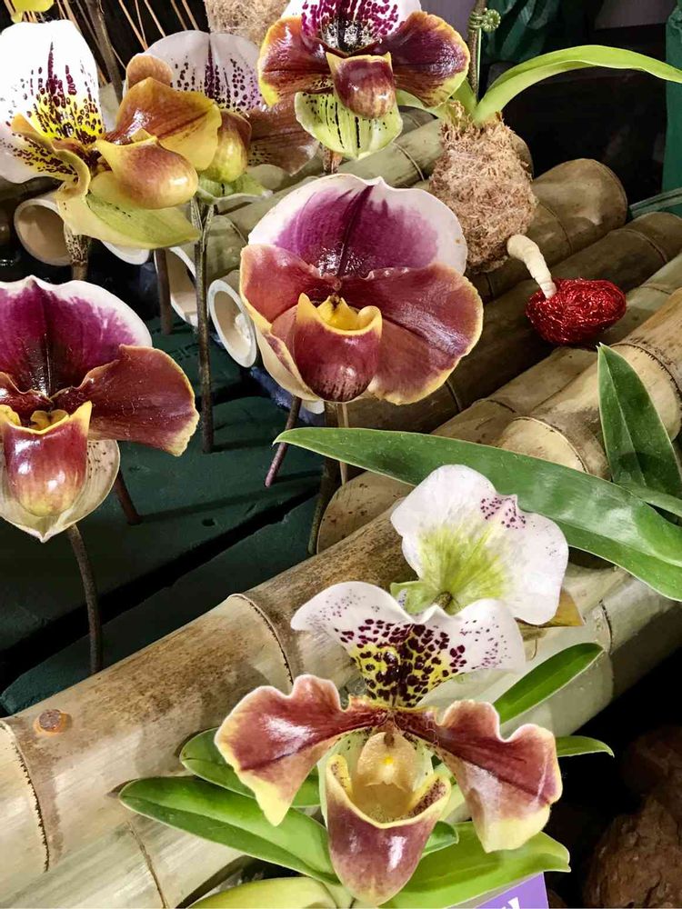 写真見て左右に節?!の途中からパフィオペティラム(絶対覚えられない)の花が?!世界らん展は圧倒的ですネ。プロの方々の汗と涙の結晶に😉👍🎶