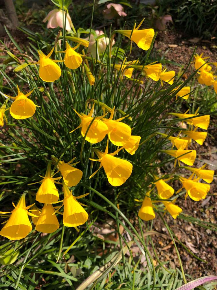 庭のナルキッススブルボコディウムの花が綺麗です。黄色いラッパ型の花が可愛い💕