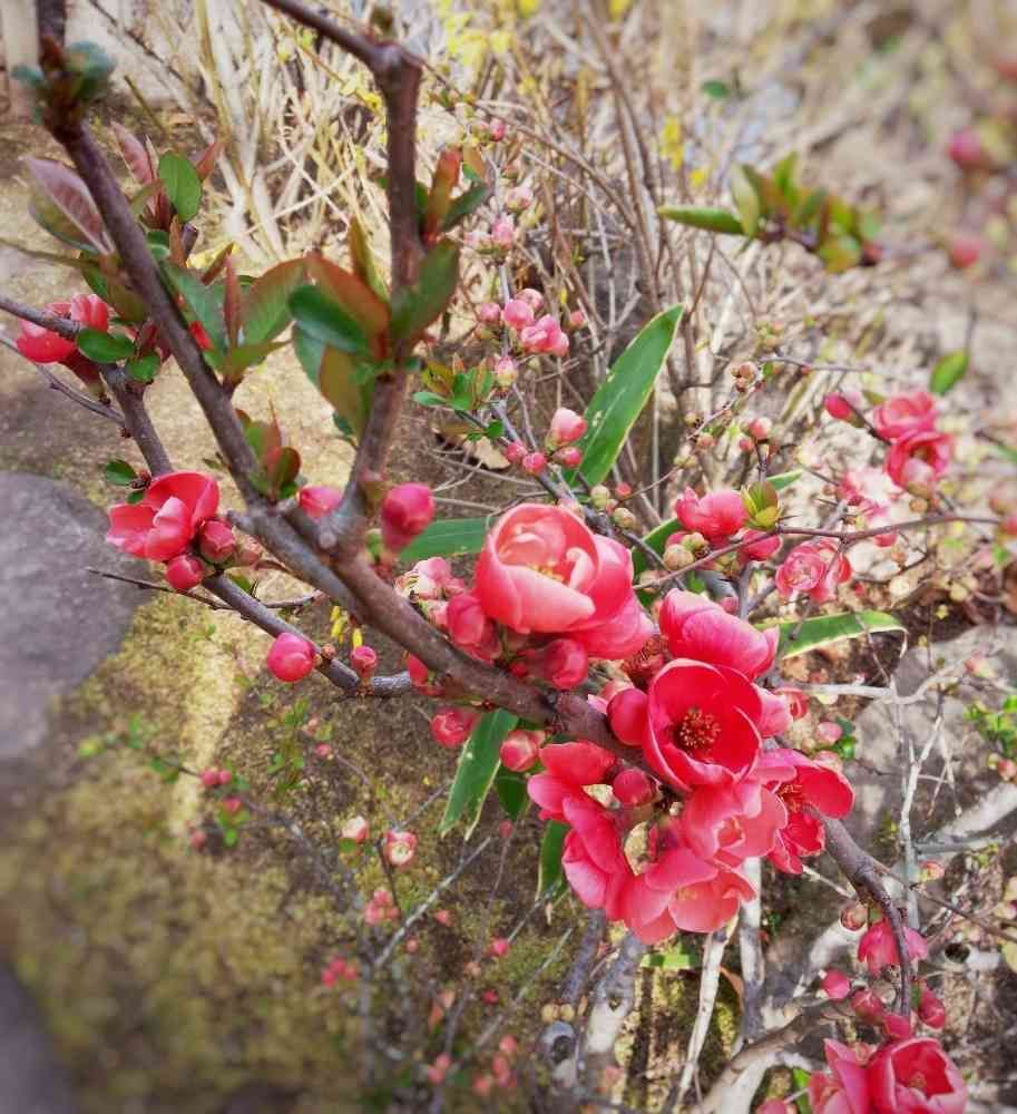 姫路城の西隣の好古園のお庭でのボケの💠…ぽっこりしたお花💠~可愛いですよね~