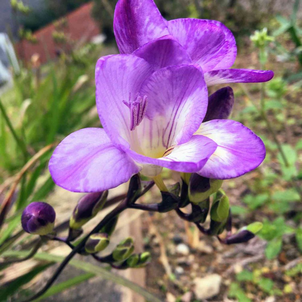 庭に紫色のフリージアが気持ちよさそうに咲いていますよ💜✨