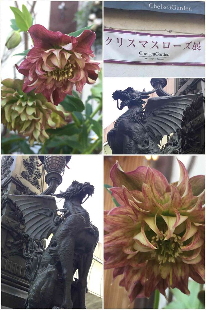 日本橋の麒麟像と近くのクリスマスローズ展で見たお花の雰囲気が似ていませんか?