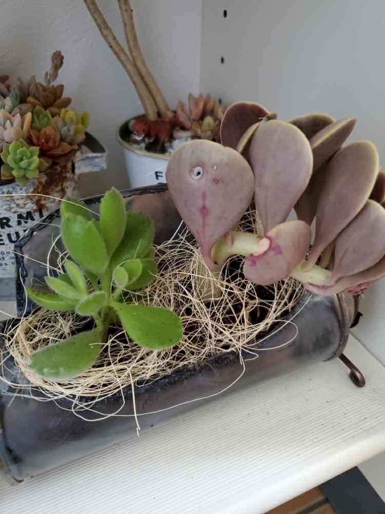 こちらは、5歳の息子が欲しいと言った多肉ちゃんとリメ鉢!息子のチョイス、シブイ…!