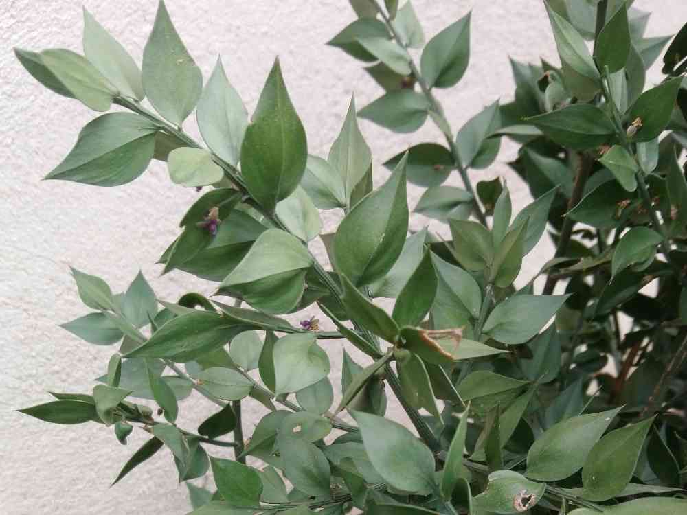結構硬めの葉っぱに、小さめの花?のようなものが…赤い実がついているところもあります。