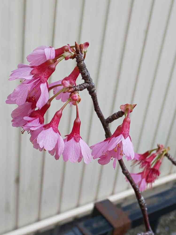 お隣さん家寄りのフェンス近くの寒緋桜が花開き、わが家にとっては嬉しいドキュメント😅👍️