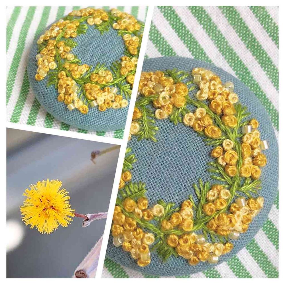 銀葉アカシアプルプレア。,ミモザの刺繍,eriの銀葉アカシアプルプレアの投稿画像