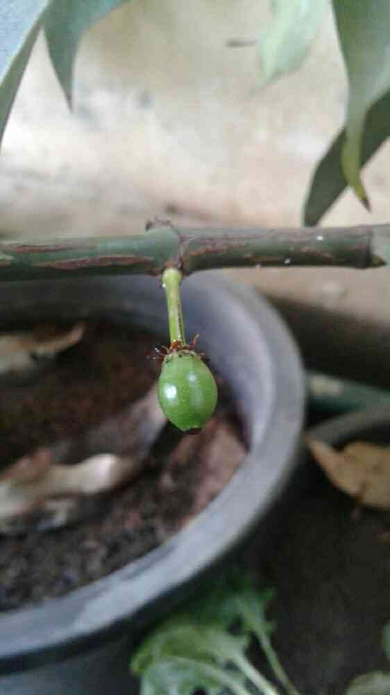 今朝見つけた2個目のレモンドロップマンゴスチンです。1個目が結実する前は、開花落花を繰り返すばかりでしたが、樹勢が落ち着いて結実率が高くなった様です。