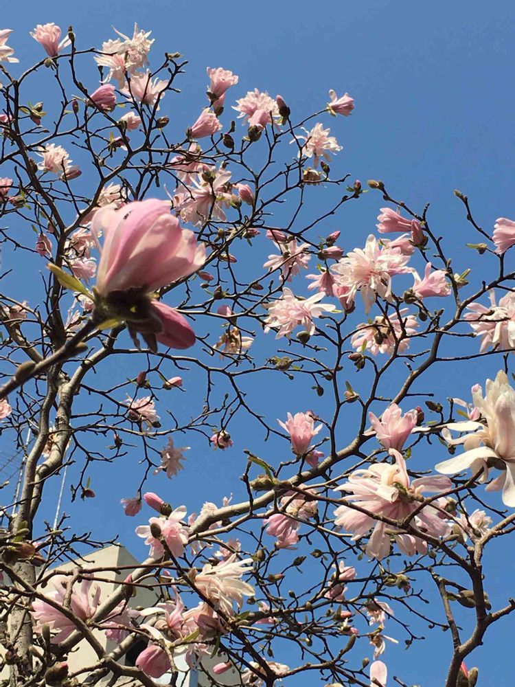 そうなんです。薄ピンクが遠目には桜に見えてしまいました。近づいたら、花が大きく桜ではないとわかったんですが、木蓮なのか、コブシなのく、はたまた別の花なのか不明でした。