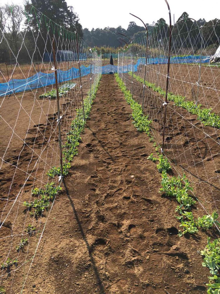 午前中、スナックエンドウのネット張りしました。腰いたいよ〜〜っ❣️
