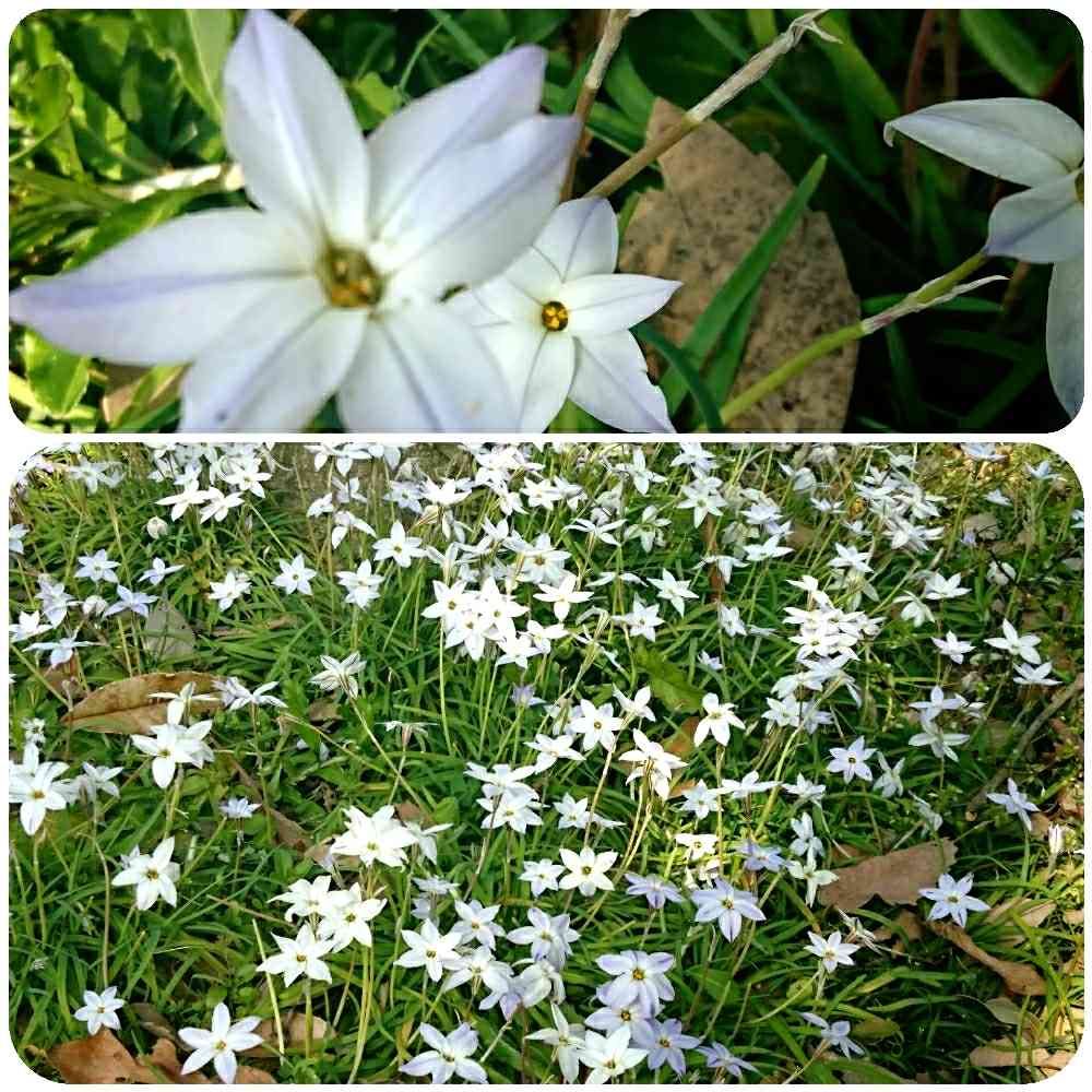 遠目に白い花がビッシリ咲いてるなぁと思って近づけたらハナニラの群生でした🎵