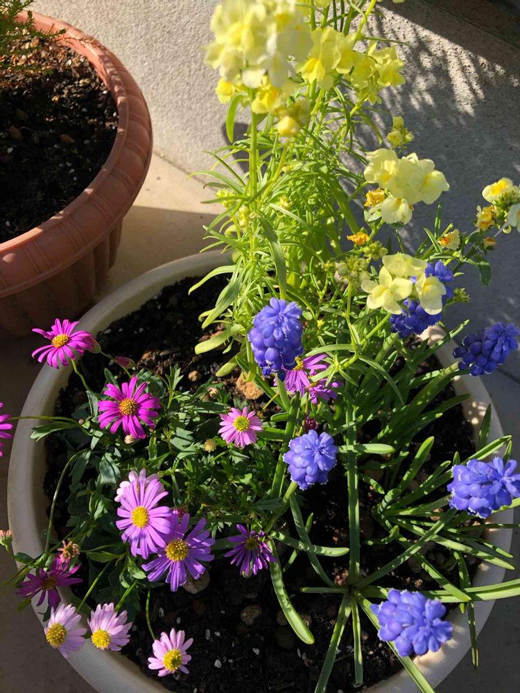 娘と一緒に花を選び、植えました。色合いが春ですね。