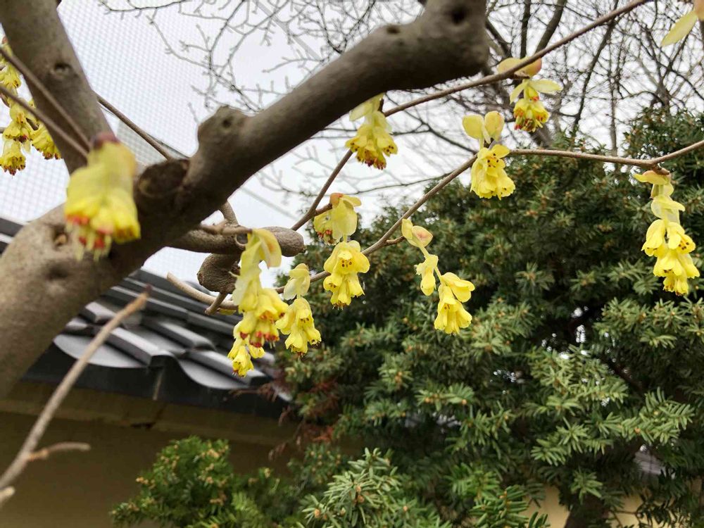 こんにちは😊🎶寒かったけど散歩🚶♀️して来ました 見つけた黄色のお花🌼トサミズキですね❓大きな木でした