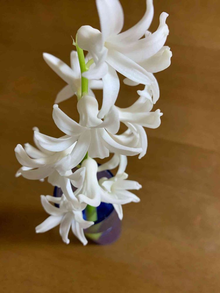 庭の花壇に、去年のヒヤシンスが植えっぱなしになってたんだけど、可愛らしく出てきたと思ったら、昨日の強風で茎から折れちゃってた💦