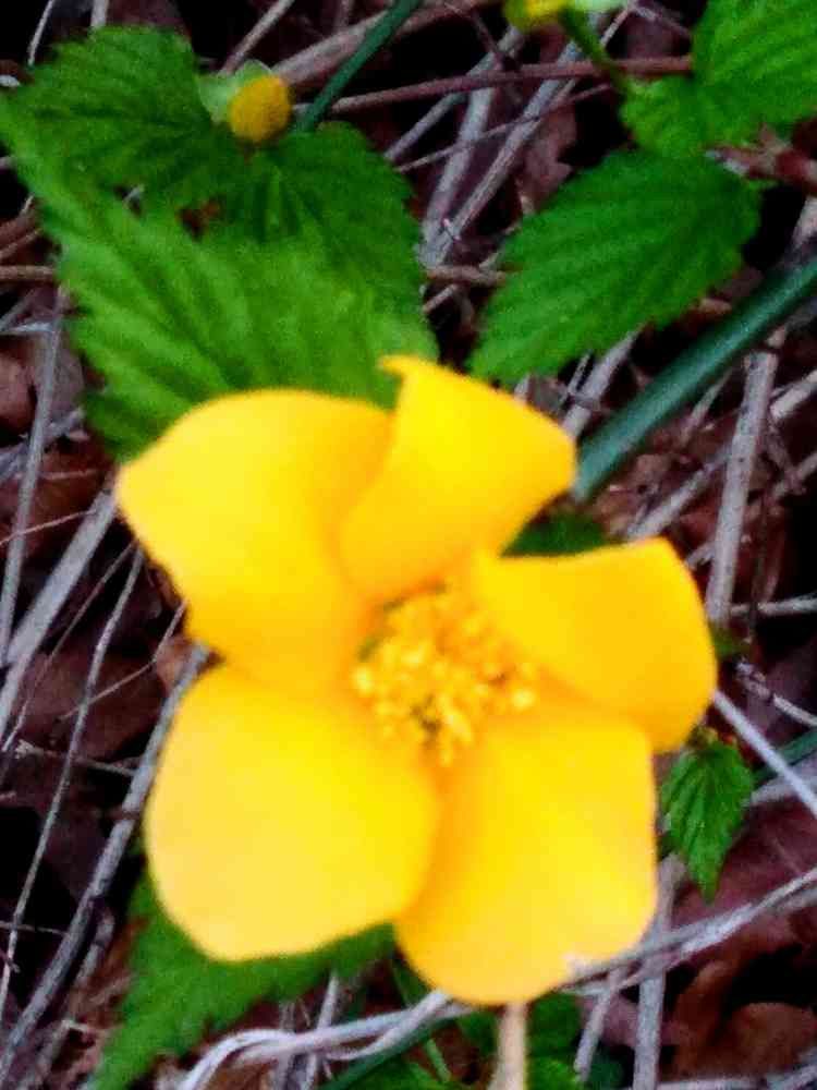 散策の途中、林の茂みに、ひっそりと山吹の花が、咲いていました。