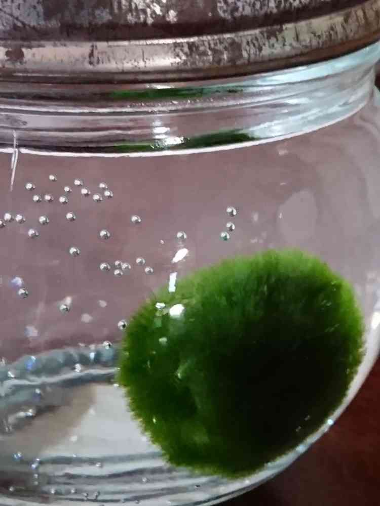 癒されますよね~(^∇^)🎶緑色でまん丸でふわふわ水中に居て😊💕一週間に一度は水替えしなきゃいけないみたいです😁頑張りますp(^-^)q