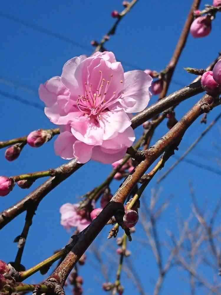 枝垂れ桃だと思います。近くのお家(空き家)。