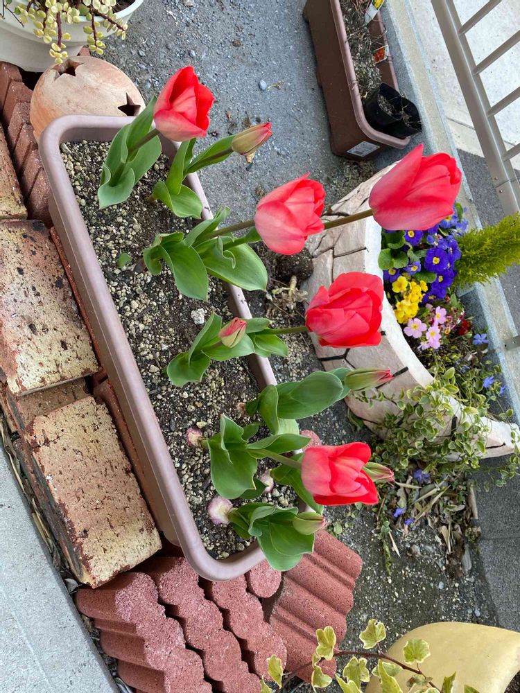 去年から植えてたチューリップ🌷咲いてくれました🤗