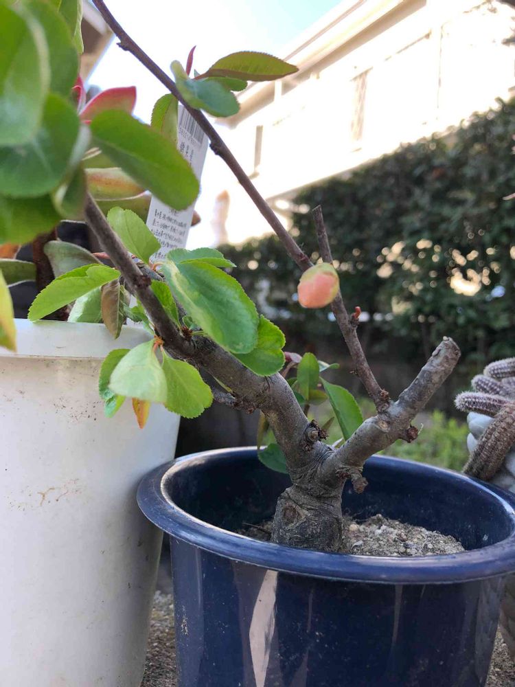 やはりボケですか?以前ボケの鉢植えを買った覚えがあるのですが、全く枯れていて暖かくなってきたら葉や蕾が出てきました