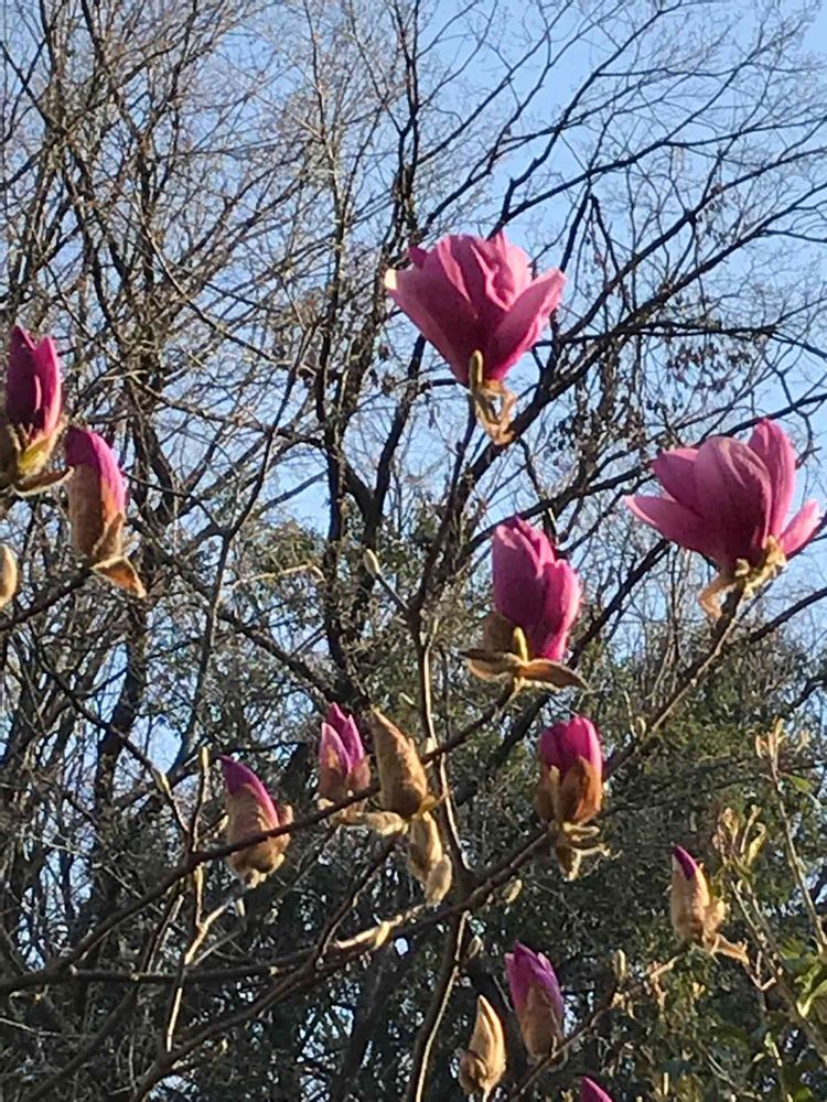 今日は、我家の紫木蓮。このところの暖かさに誘われて、やっと開花が始まりました。