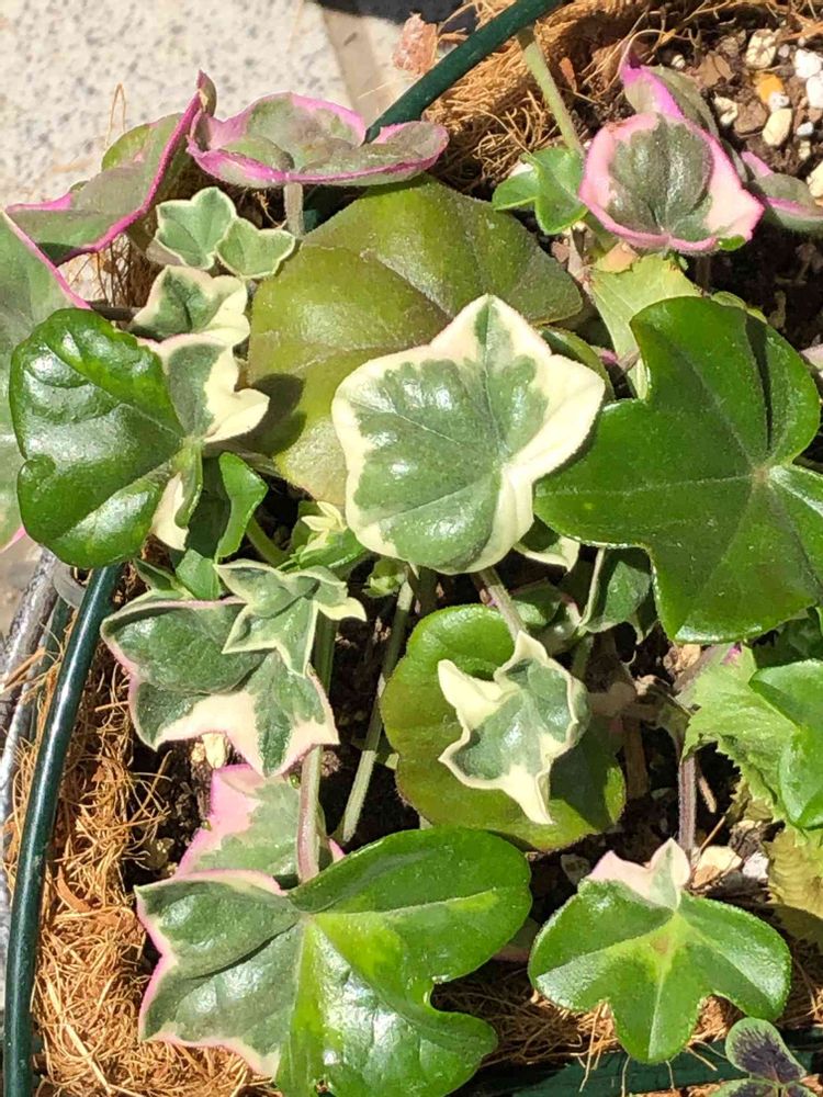 若葉の頃は、葉の周りがピンク色なんですか❓ 斑入りで可愛いアイビーですね💕