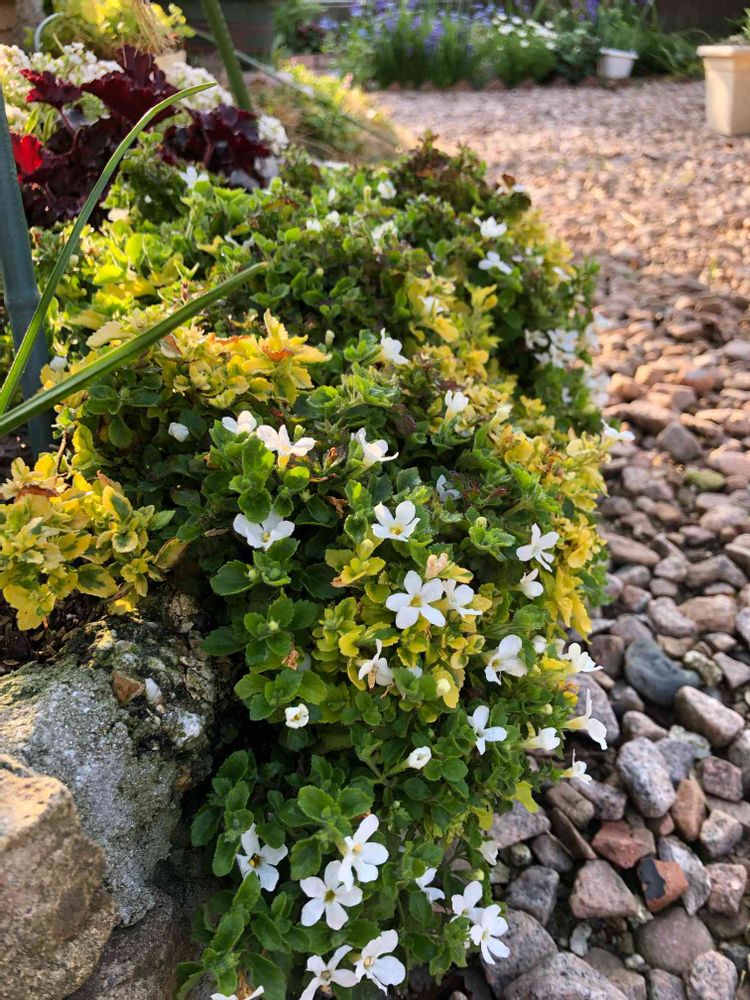 花壇の中の斑入りバコパは去年、挿し木をしてて夏・冬越しして元気に咲いてくれてます❣️