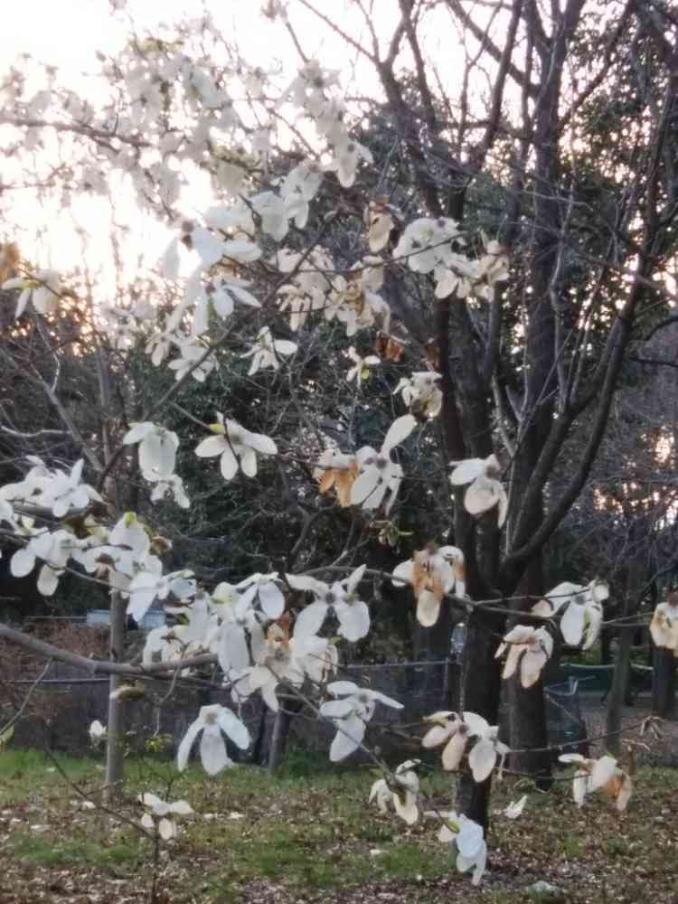 コブシやモクレンは暗くなっても浮かび上がるのでこの時期は楽しめますね(*´˘`*)♡