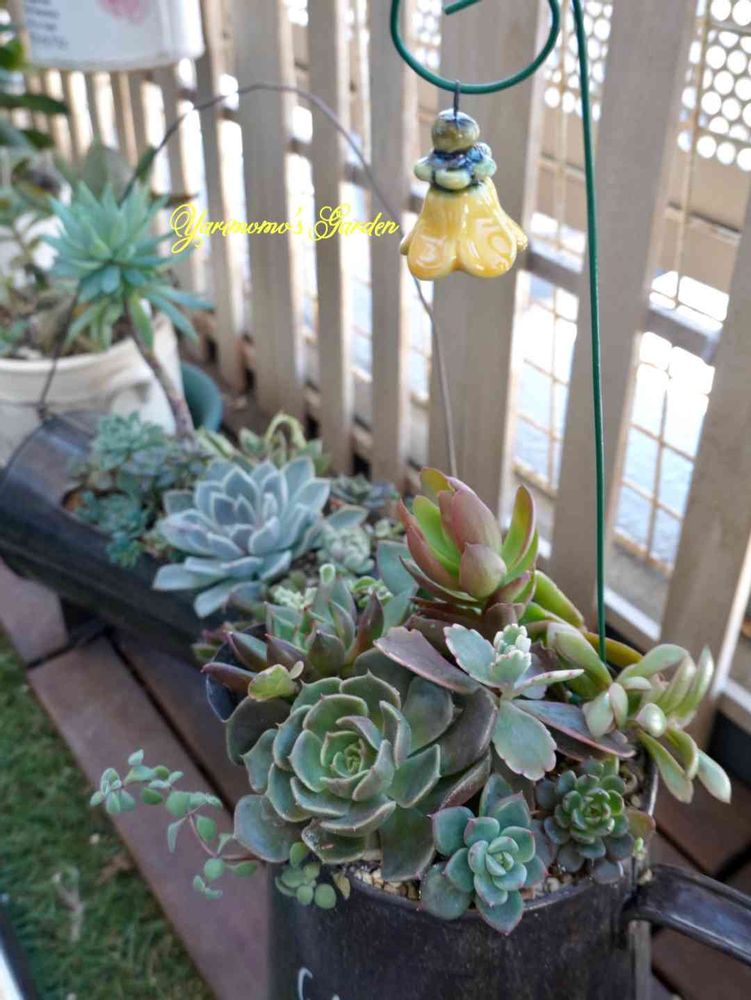 5つ目のお土産お花ピックと多肉の寄せ植えです✨この間、かなり伸びた火祭りをカットして、そのまま植え直しました🎶