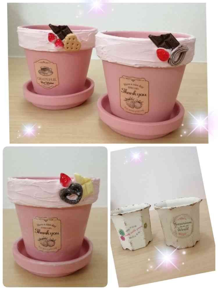 右下↘️はプラ鉢リメイク。心置きなくエイジング加工ポポポポ~ン‼️