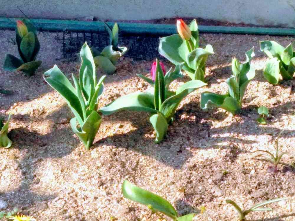 通り道の花壇に、チューリップ🌷が咲きだしました。
