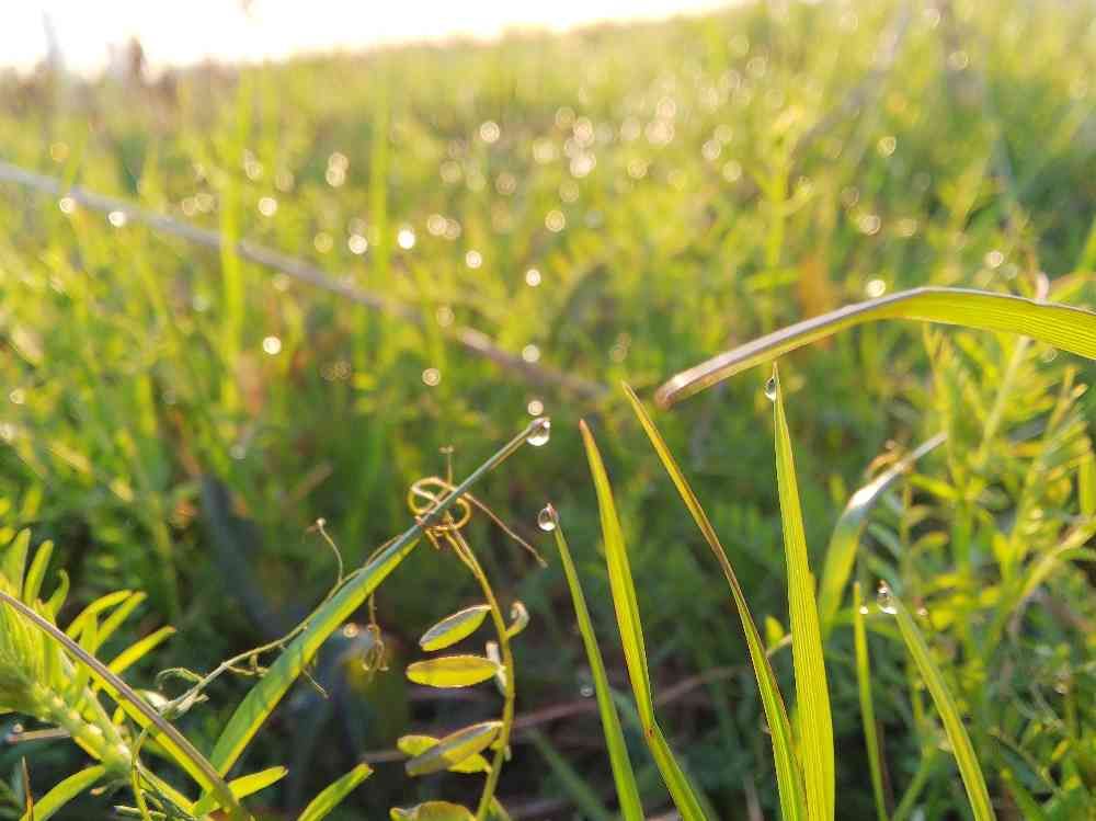 今朝の散歩🐕️🐾の途中、雑草がキラキラ✨✨✨✨🌿輝いていました。